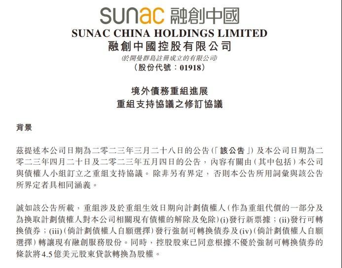 已获近九成债权东谈主复古!融创中国泄漏境外债务重组推崇